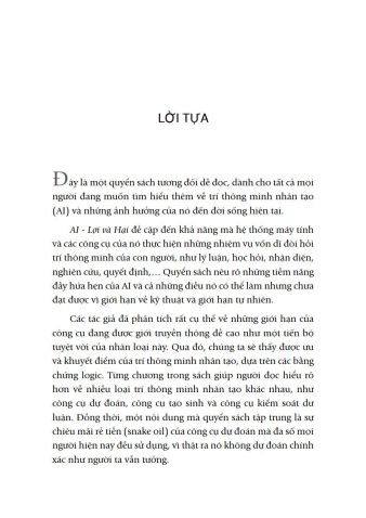 Khi viết lời tựa cho quyển sách, Giáo sư John Vu – Giáo sư ưu tú ngành Khoa học Máy tính, Giám đốc chương trình Đổi mới Công nghệ Sinh học và Tính toán, đồng Giám đốc chương trình Trí tuệ nhân tạo tại Đại học Carnegie Mellon – nhận định đây là một tài liệu tham khảo có giá trị dành cho những ai muốn tìm hiểu về AI, giúp người đọc trang bị thêm nhiều kiến thức để hiểu và chủ động hơn trước khi sử dụng công cụ này trong đời sống.