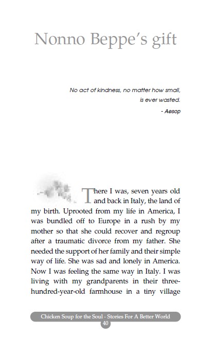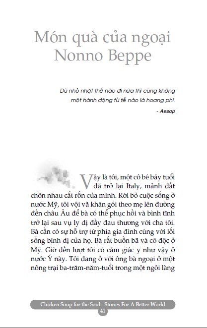 Những câu chuyện hay và ý nghĩa trong loạt truyện Chicken Soup đã thật sự làm rung động trái tim của hàng chục triệu độc giả trên khắp hành tinh khi được chuyển ngữ thành nhiều ngôn ngữ khác nhau. Nó đã thật sự làm cho thế giới này trở nên tươi đẹp và phát triển tích cực hơn với sự lan truyền cảm xúc từ người sang người.