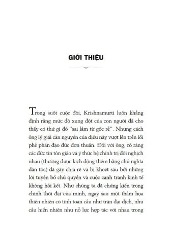 Đã hơn 40 năm kể từ khi Krishnamurti trình bày các bài nói chuyện kể trên, nhưng giá trị và tính thời sự của chúng hầu như vẫn còn vẹn nguyên. Hãy nghe ông nói: “Ngay lúc này, những cuộc chiến tranh vẫn đang diễn ra trên thế giới, giết nhau vì những lý tưởng và những ý tưởng, để khẳng định vị thế và quyền lực của quốc gia, để lãnh thổ không bị xâm phạm hoặc bị bao vây. Hành động đó có thông tuệ chăng? Loài người đã tiến hóa qua một quãng thời gian dài, đã có hai cuộc chiến tranh thế giới kinh hoàng, ấy vậy mà họ vẫn đang chuẩn bị cho một cuộc chiến khác”.