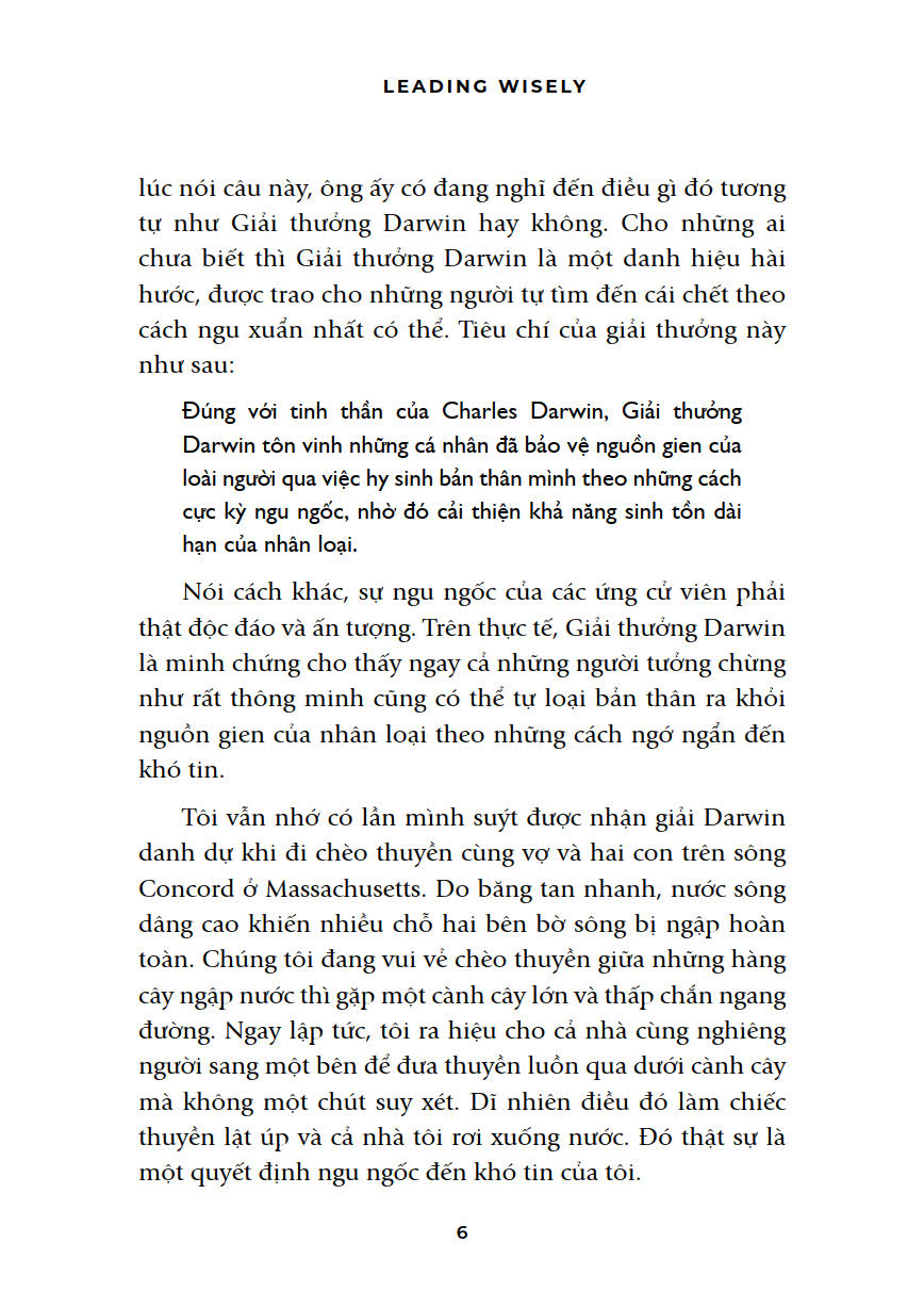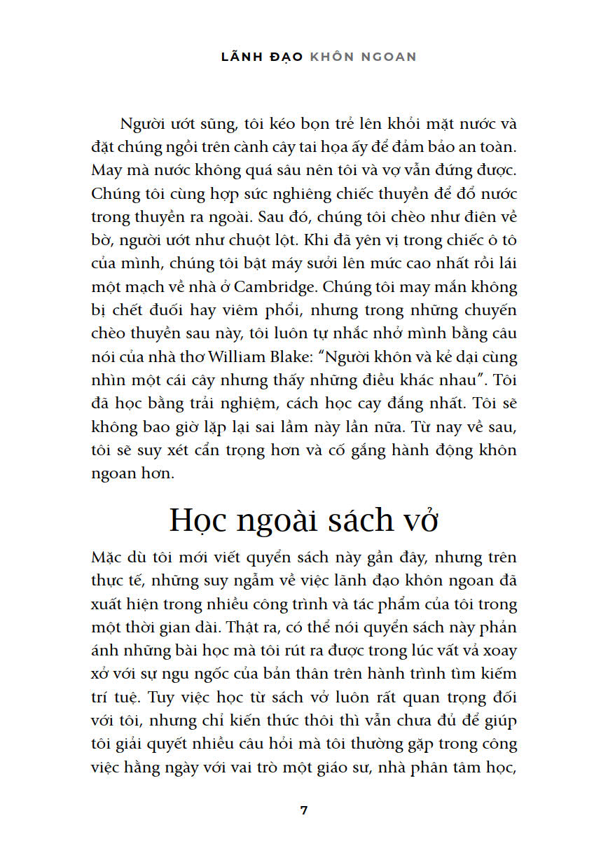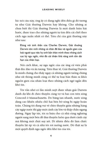Lãnh đạo khôn ngoan không phải một quyển cẩm nang giúp bạn trở thành một nhà lãnh đạo vĩ đại, mà là lời kêu gọi mỗi người trở nên chân thành, tử tế và hạnh phúc hơn, từ đó phát huy tinh thần lãnh đạo hướng tới lợi ích lâu dài để mang lại giá trị tốt đẹp cho bản thân và xã hội.