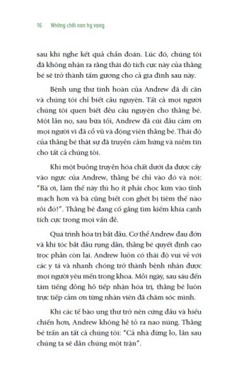 “Những chồi non hy vọng” là quyển sách có thể song hành cùng bạn trong khoảng thời gian “vun trồng” nhân cách, niềm tin, lòng trắc ẩn và tìm thấy hy vọng ở những khoảng thời gian đen tối nhất cuộc đời. Quyển sách mở ra một thế giới với những câu chuyện mà bạn có thể chiêm nghiệm, đồng cảm, từ đó rút ra những bài học giá trị cho cuộc sống của mình và những người xung quanh.