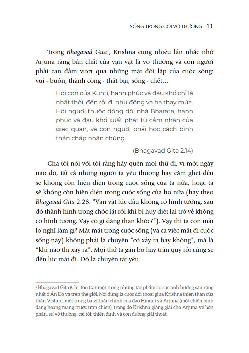 Ông nhắn nhủ với độc giả: “Cuộc đời vốn vô thường. Điều ta cần không phải là nắm chặt mọi thứ hơn, mà là tỉnh thức hơn”.