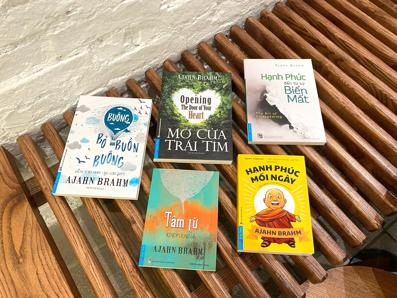 Thiền sư Ajahn Brahm là tác giả của nhiều tựa sách nổi tiếng: Mở cửa trái tim, Buông bỏ buồn buông, Hạnh phúc đến từ sự biến mất, Tâm từ, Hạnh phúc mỗi ngày… Tuy những tác phẩm này đã được xuất bản ở Việt Nam từ lâu và được đông đảo bạn đọc yêu thích, nhưng đây là lần đầu tiên thiền sư Ajahn Brahm tham gia giao lưu, giới thiệu sách với độc giả Việt. Có lẽ vì vậy mà ngay từ sớm, cả khán đài của buổi giao lưu đã chật ních người, gần như không còn chỗ trống. Tuy phải chen chúc nhau dưới sân khấu của đường sách, nhưng khi vị thiền sư 75 tuổi xuất hiện, mọi người vẫn nhắc nhau nghiêm chỉnh nhường đường đón tiếp thiền sư lên sân khấu.