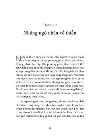 Nhưng có phải phương pháp thiền nào cũng đúng không? Các phương pháp thiền vẫn có thể sai. Osho đặc biệt chỉ ra rằng mọi phương pháp thiền đưa bạn đi sâu vào sự tập trung đều sai. Bởi vì chúng không giúp bạn sống cởi mở mà sẽ trở nên ngày càng khép kín. Thiền không phải là tập trung mà là thả lỏng. Chỉ cần thả lỏng và đón nhận mọi thứ, nhận thức mọi thứ, chỉ quan sát và đừng chối bỏ điều gì. Khi đó bạn sẽ cảm nhận được sự kỳ diệu của thiền: “Biến điều tiêu cực thành tích cực, biến bóng tối thành ánh sáng, đó là phép màu của thiền. Biến một người đang run rẩy thành một linh hồn không sợ hãi, biến một người đang bám vào tất cả những thứ ngu ngốc thành một người không bám chấp, một người không sở hữu, là điều xảy ra thông qua thiền”.