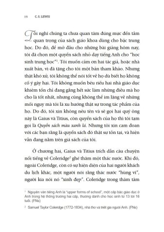 Xuất phát điểm của phần đầu tiên là một quyển sách ngữ pháp tiếng Anh ở bậc trung học mà Lewis cho là đã tiêm nhiễm vào đầu óc ngây thơ của học sinh những lý thuyết không thể chấp nhận về cảm xúc. Với ông, những ý tưởng ẩn chứa trong đó sẽ phá hủy nền tảng giáo dục tốt đẹp xưa cũ, hủy hoại nền văn minh khi tìm cách tách rời cảm xúc ra khỏi thực tại và giáng cấp cảm xúc.